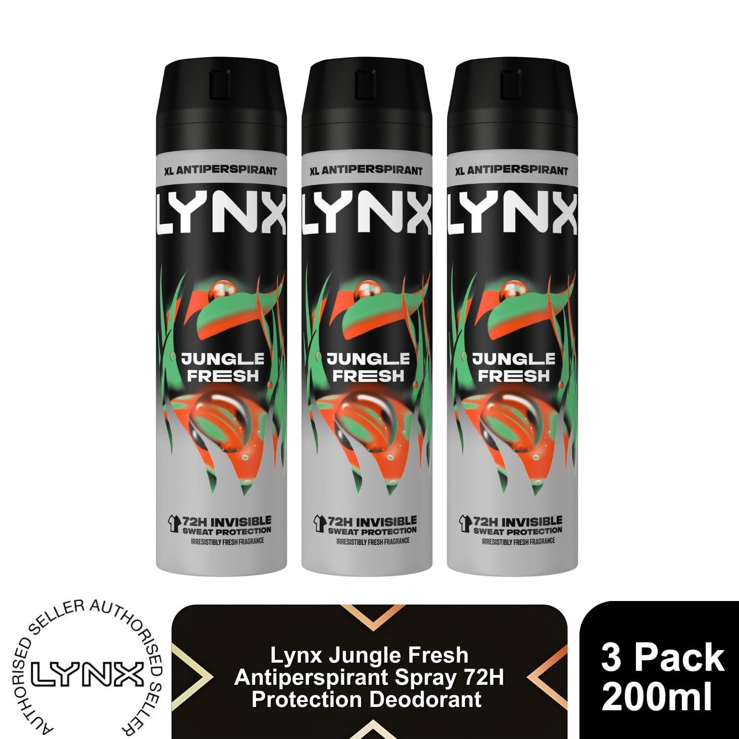 Lynx Jungle Fresh Antiperspirant Spray 72H Protection Deodorant 200ml, 3 Pack