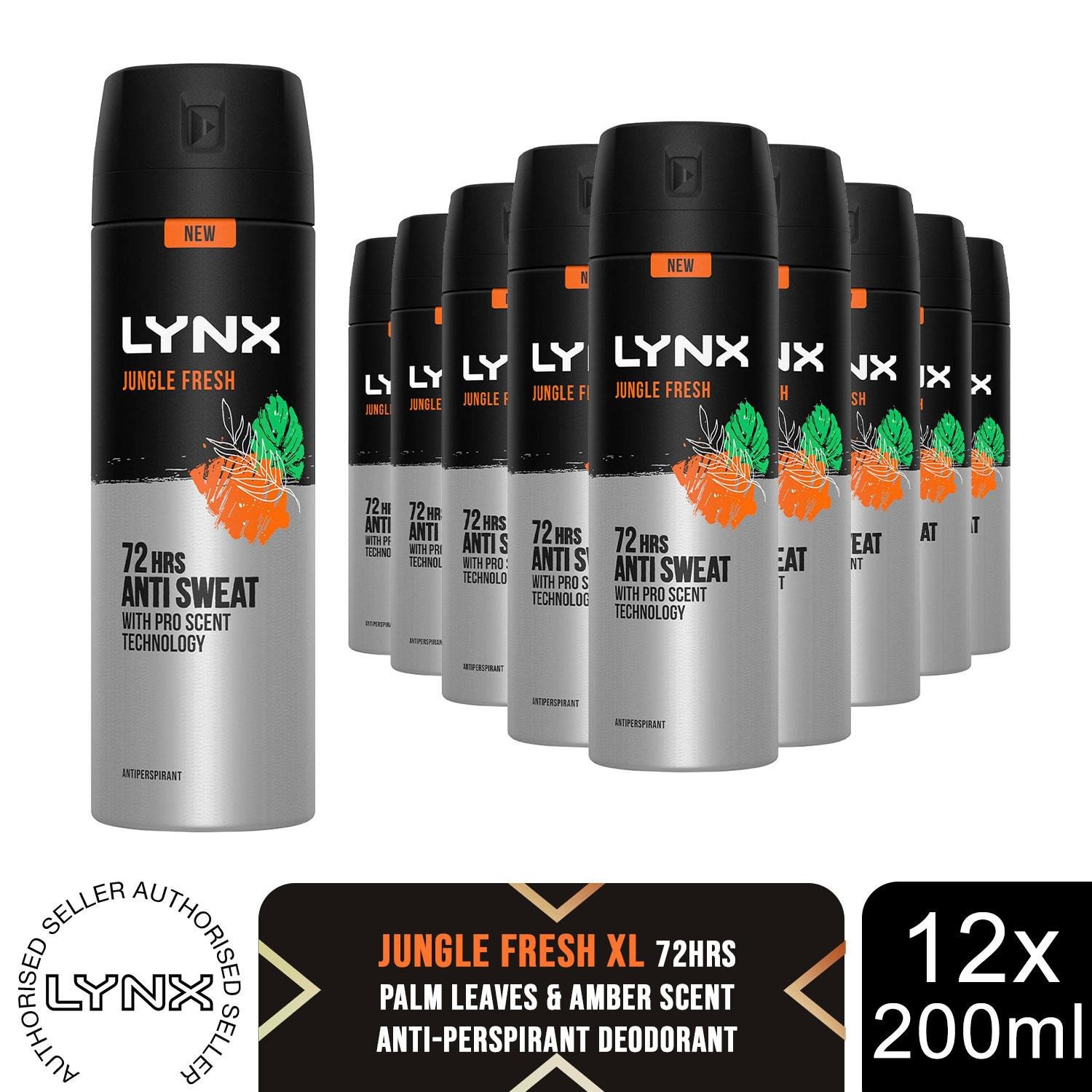Lynx Jungle Fresh 72 HRS Anti Sweat Anti-Perspirant Body Spray for Men, 12x150ml