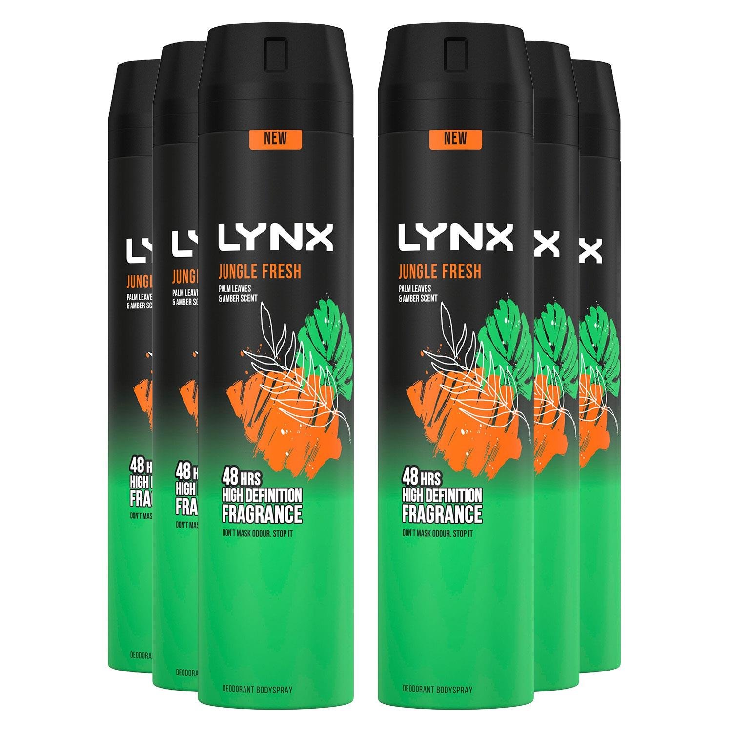 Lynx Mens Body Spray Jungle Fresh 48Hrs Protection High Definition Fragrance, 6x200ml - One Size