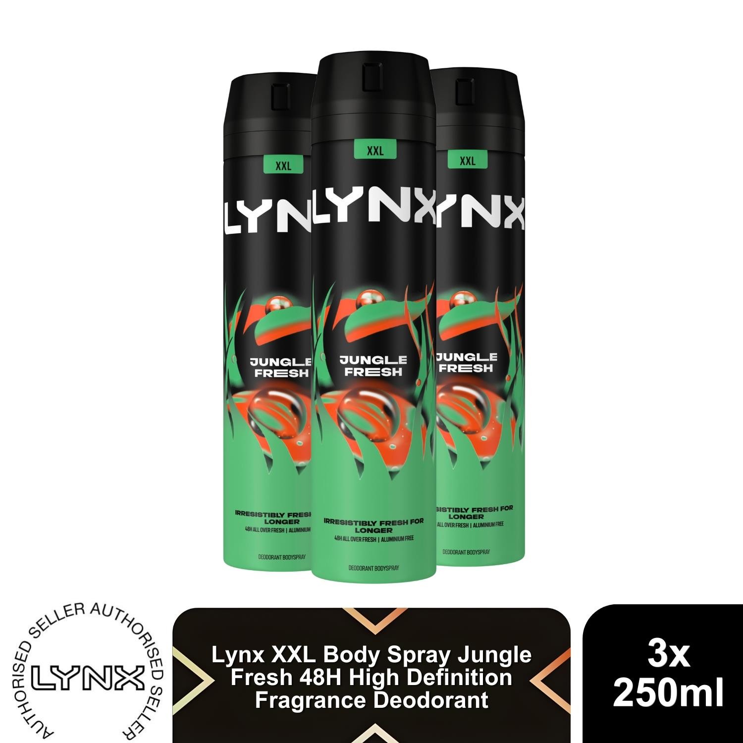 Lynx Mens XXL Body Spray Jungle Fresh 48H High Definition Fragrance Deodorant,3x250ml - One Size