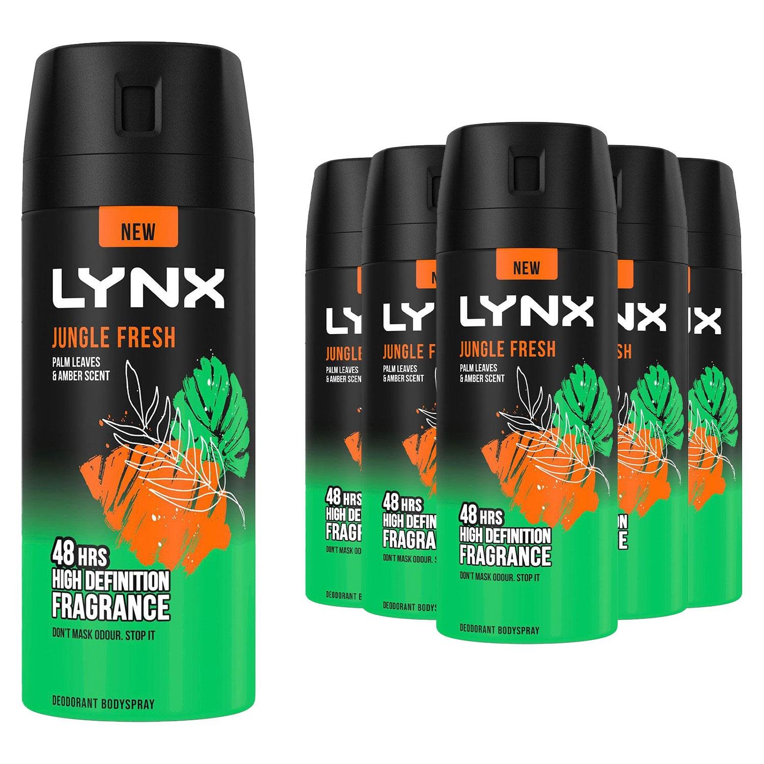 Lynx Mens Body Spray Jungle Fresh 48H High Definition Fragrance Deodorant 150ml, 6pk - One Size