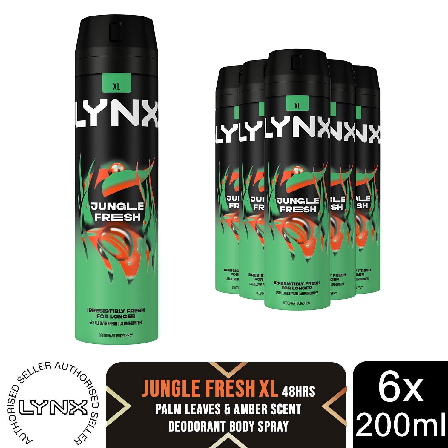 Lynx Body Spray Jungle Fresh 48Hrs Protection High Definition Fragrance, 6x200ml