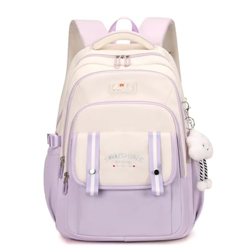 Feizikaw School Backpack Secondary Student Schoolbag College Students Female Junior High School High Large Capacity Versatile Girls Campus Shoulder Bag (Purple, One Size)