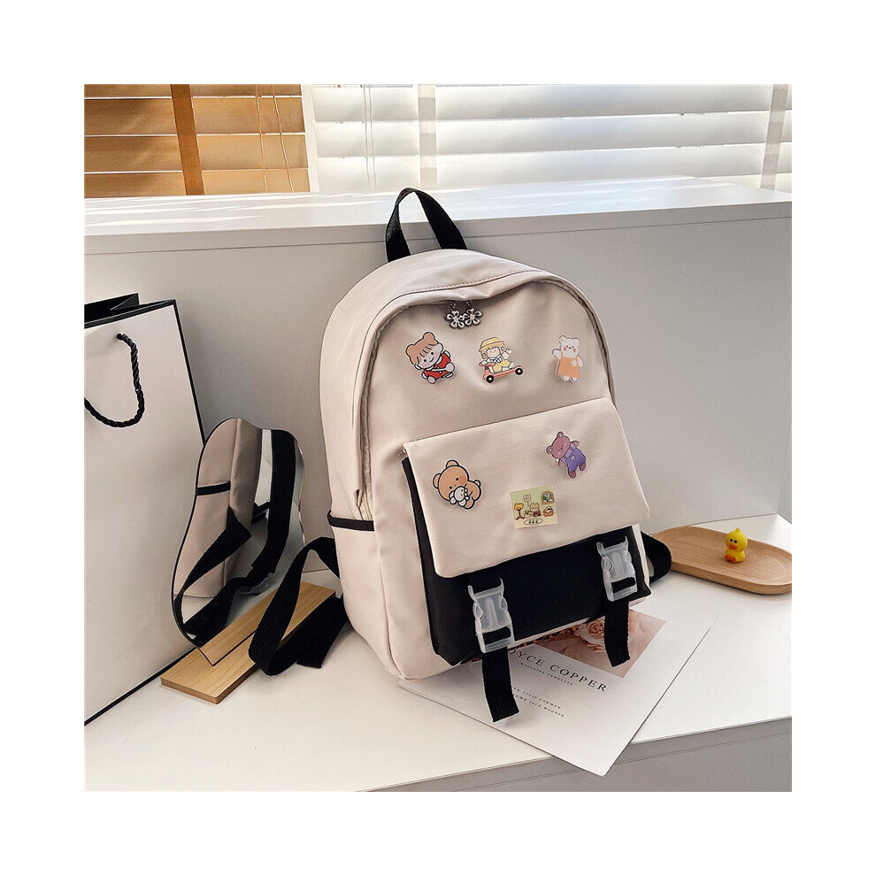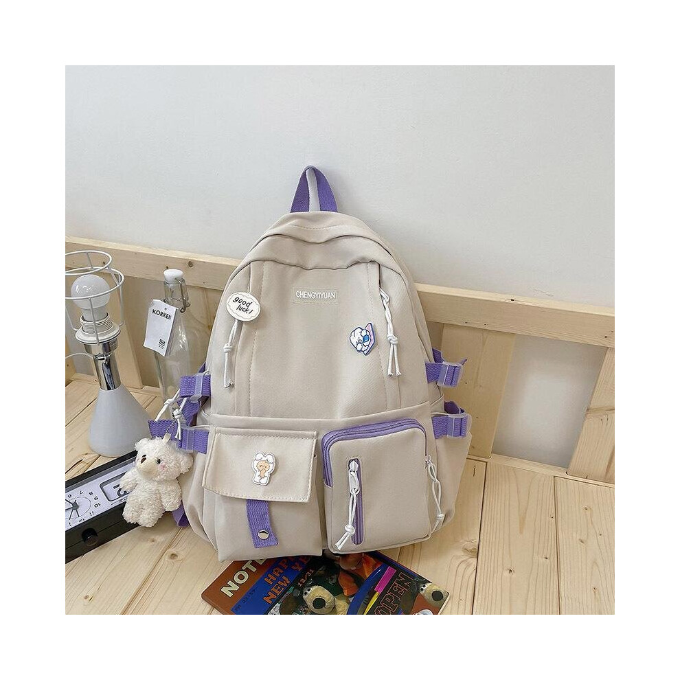 (Beige-With doll pendant) Girl Backpack Campus Small Fresh Large Capacity Junior High School Backpack Women