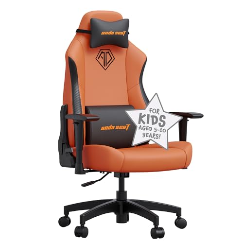 Anda Seat Phantom Kids Gaming Chair Ages 5-10 - Ergonomic Video Game Seat, Small Reclining Computer Chair for Boys & Girls, Neck & Lumbar Pillows - Children's Orange PVC Leather Junior Desk Seat