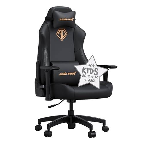 Anda Seat Phantom Kids Gaming Chair Ages 5-10 - Ergonomic Video Game Seat, Small Reclining Computer Chair for Boys & Girls, Neck & Lumbar Pillows - Children's Black PVC Leather Junior Desk Seat