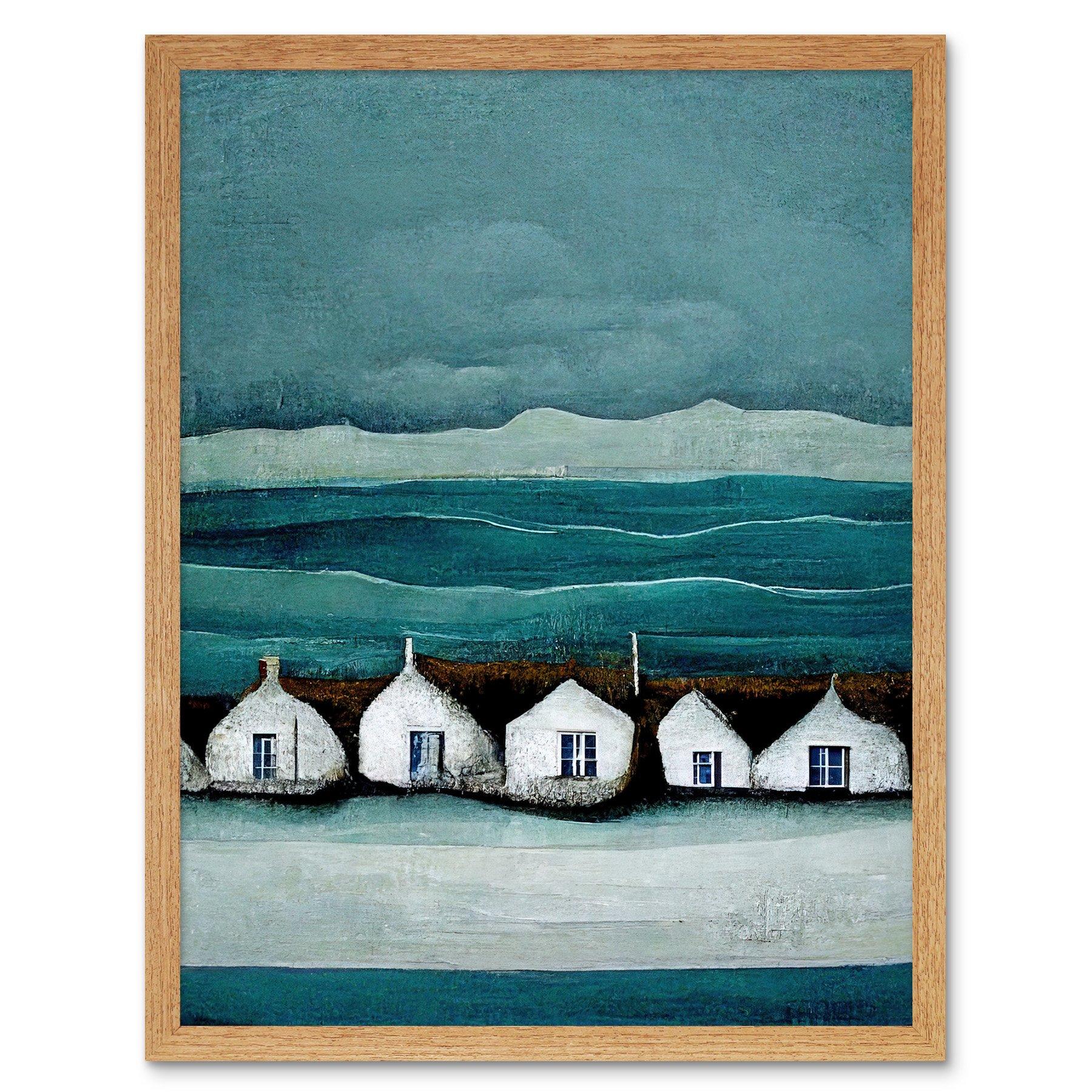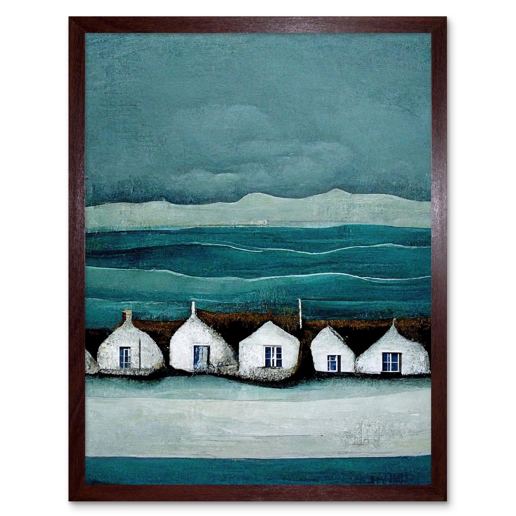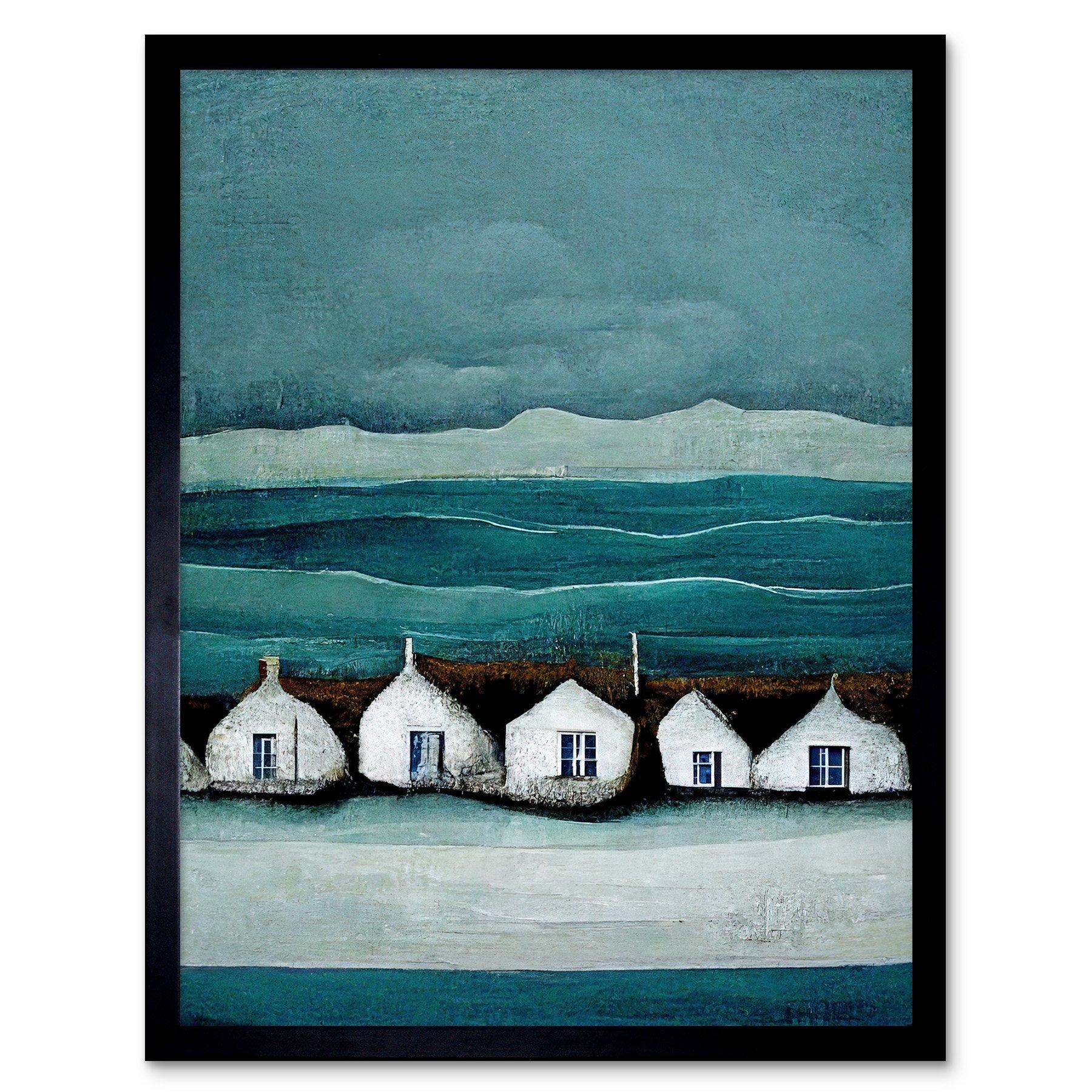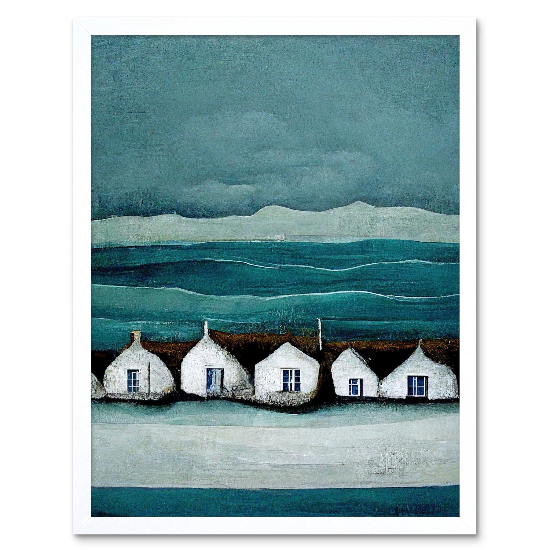 Row Of White Fisherman Cottages Isle Of Jura Art Print Framed Poster Wall Decor 12x16 inch
