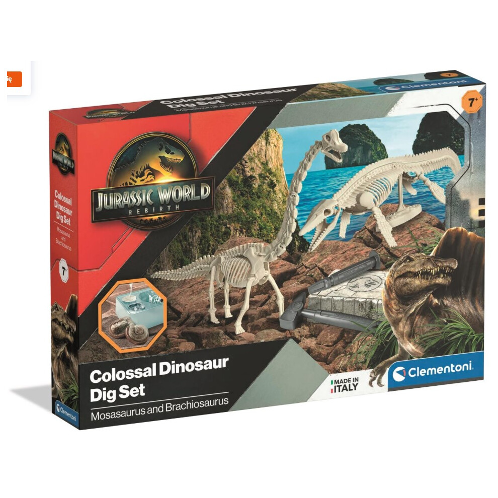 Clementoni Jurassic World Colossal Dinosaur Dig Set Mosasaurus and Brachiosaurus – Excavation and Build Kit for Kids 7+