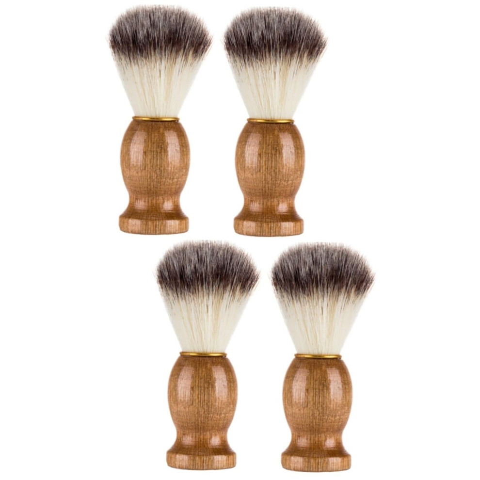 Pack of 4 Shaving Brushes for Beard Care, Wooden Light Brown Shaving Cream Brush, Men's Salon Grooming Tool