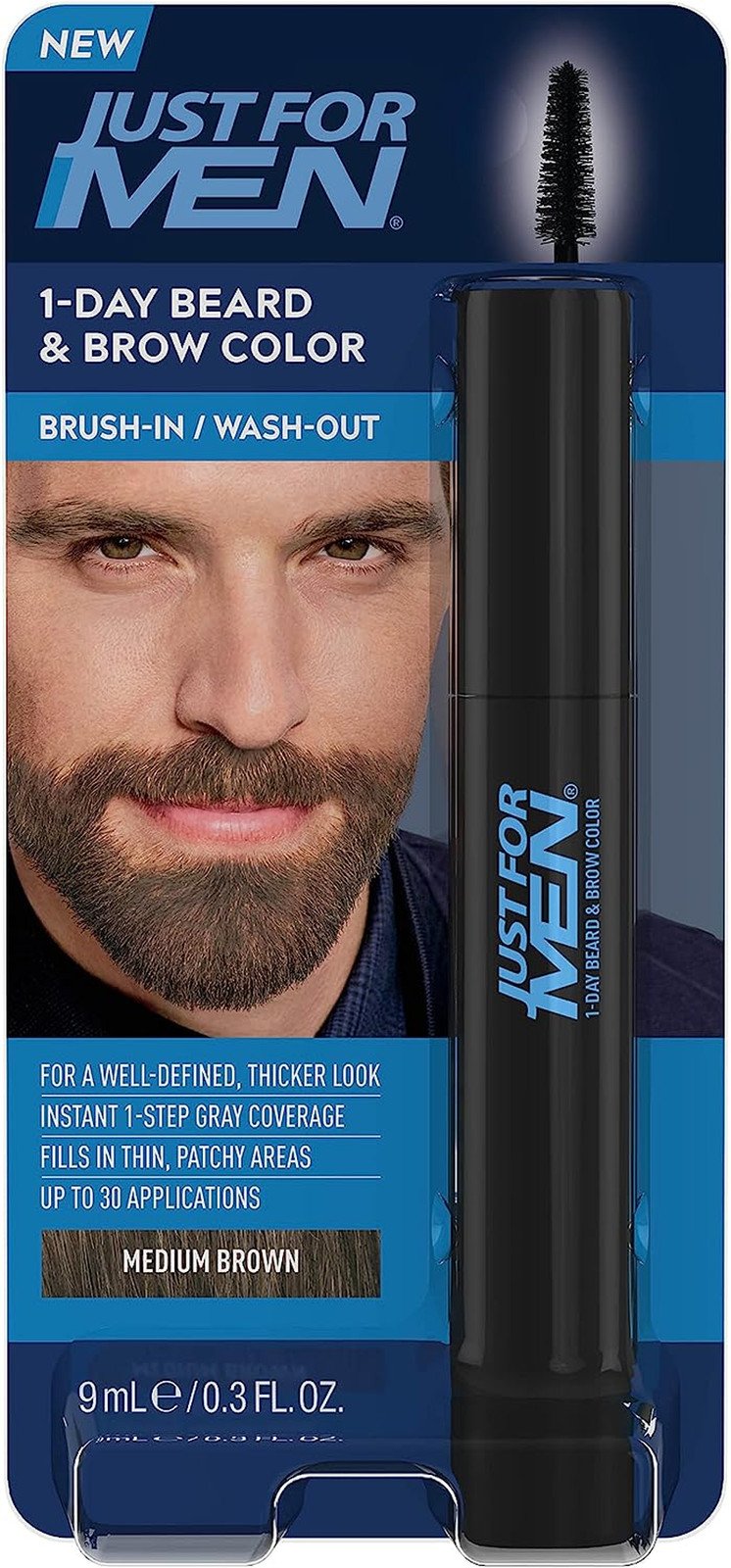 Just for Men 1-Day Beard & Brow color, Temporary color for Beard and Eyebrows, For a Fuller, Well-Defined Look, Up to 30 Applications, Medium Brown