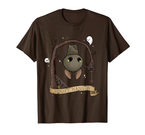 Just Hangin Bat Cute Halloween Animal Spooky Adorable Goth T-Shirt, Men, Brown, Medium
