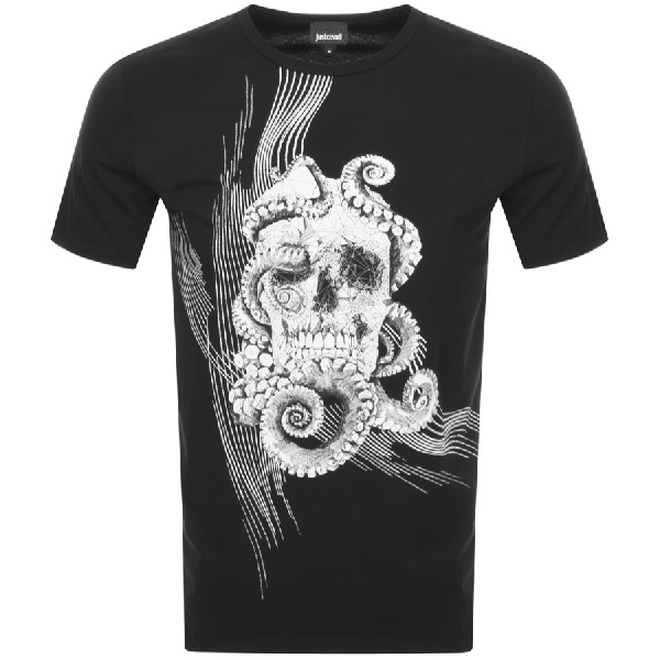 JUST CAVALLI Men's Skull Black T-Shirt. Size: Large