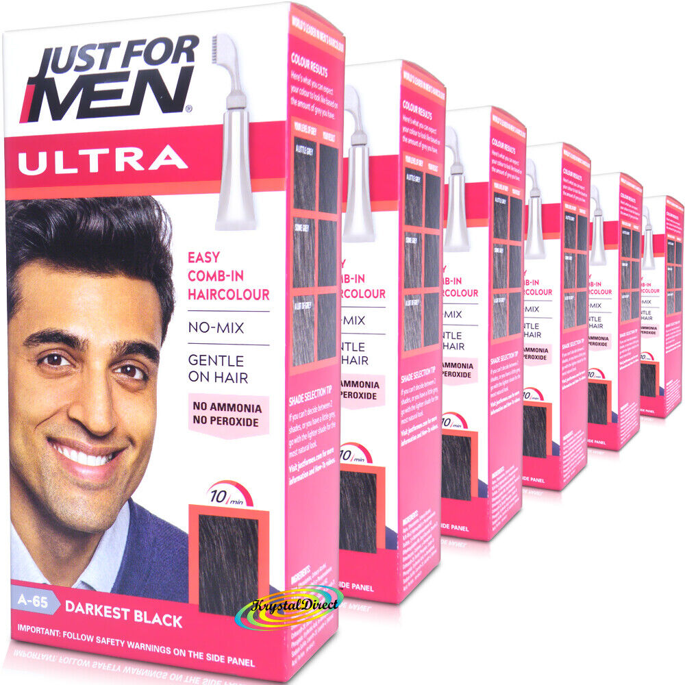 6x Just For Men Ultra Easy Comb In Hair Colour Dye A65 DARKEST BLACK - Autostop