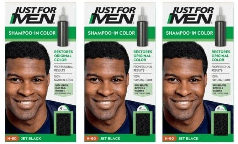 BL Just For Men Shampoo In #H-60 Hair Color Jet Black - THREE PACK