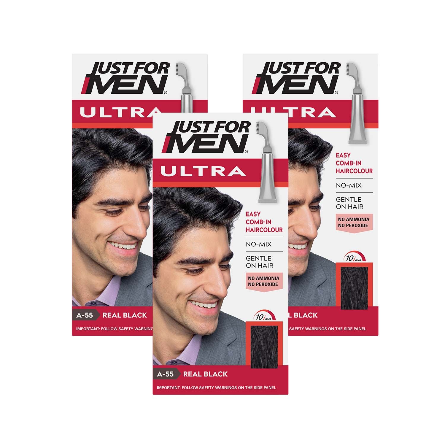 Just For Men Ultra Easy A55 Real Black Hair Dye x3 Comb-In AutoStop Colour Kit