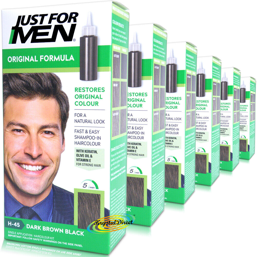 6x Just For Men H45 Dark Brown Black Original Formula Shampoo in Haircolour Dye