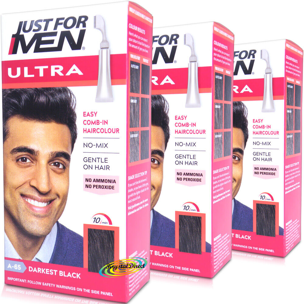 3x Just For Men Ultra Easy Comb In Hair Colour Dye A65 DARKEST BLACK - Autostop