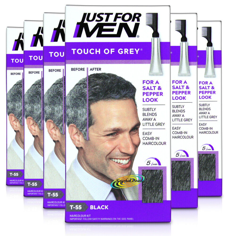 6x Just for Men Touch of Grey T55 Black Easy Comb in Haircolour Dye