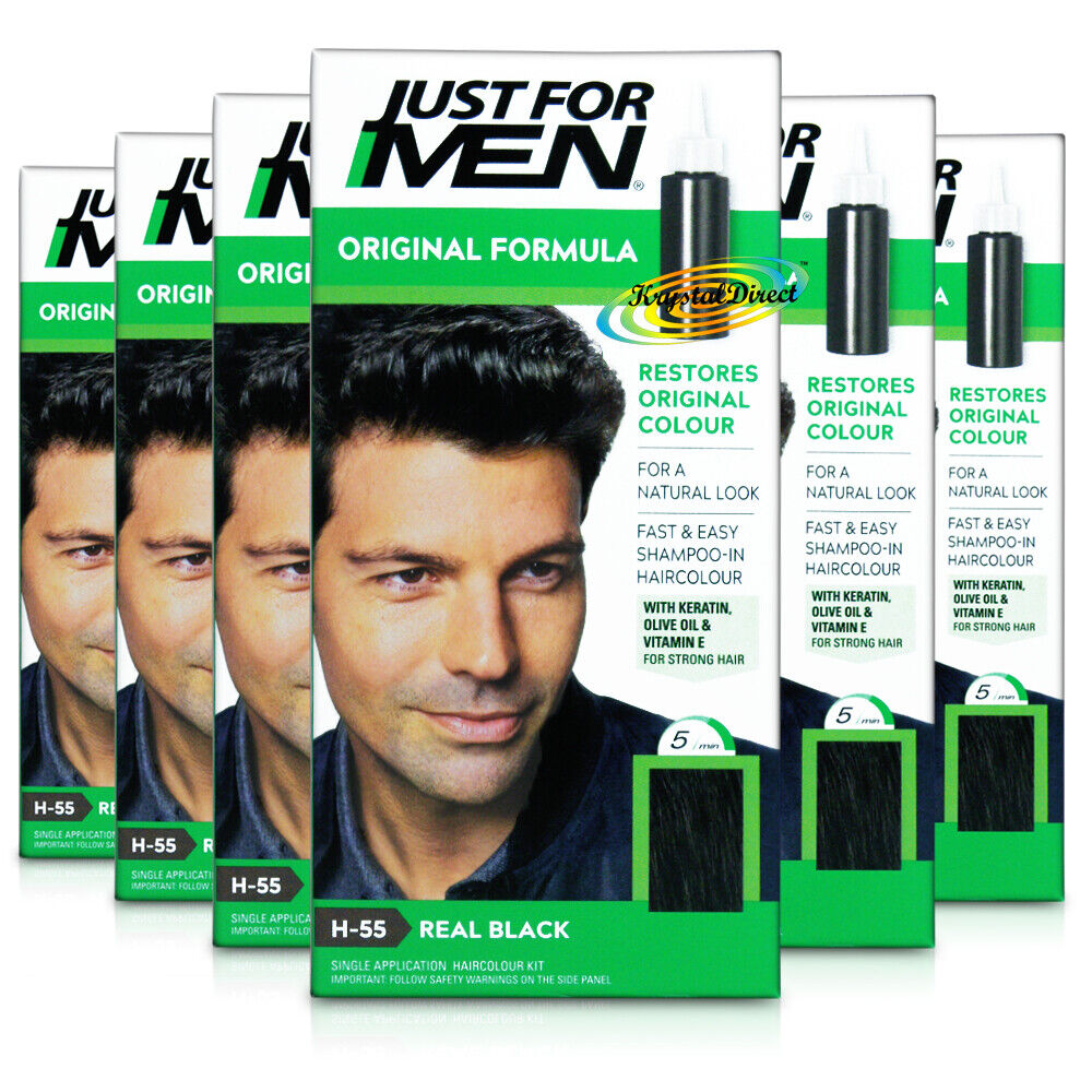 6x Just For Men H55 Real Black Original Formula Shampoo in Haircolour Dye