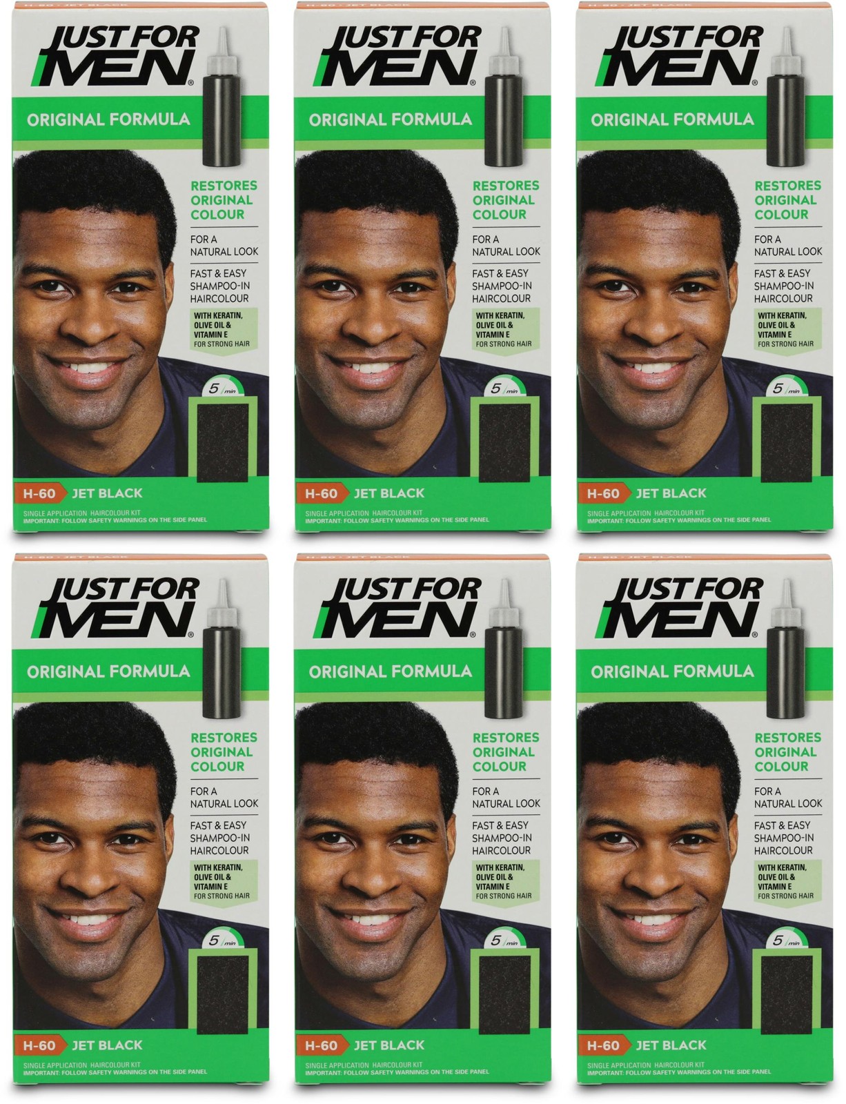 6x Just For Men H60 Jet Black Original Formula Shampoo in Haircolour Dye