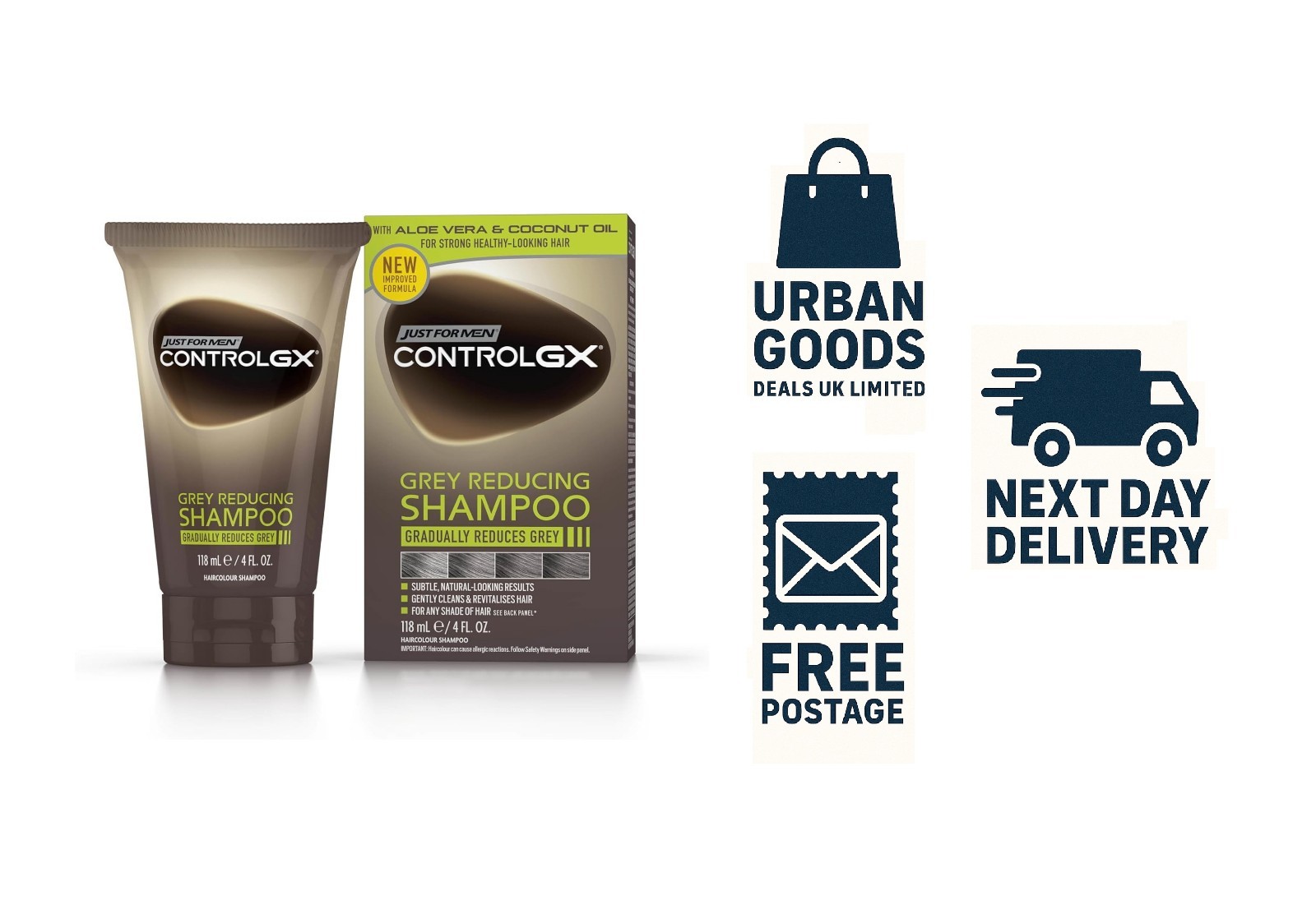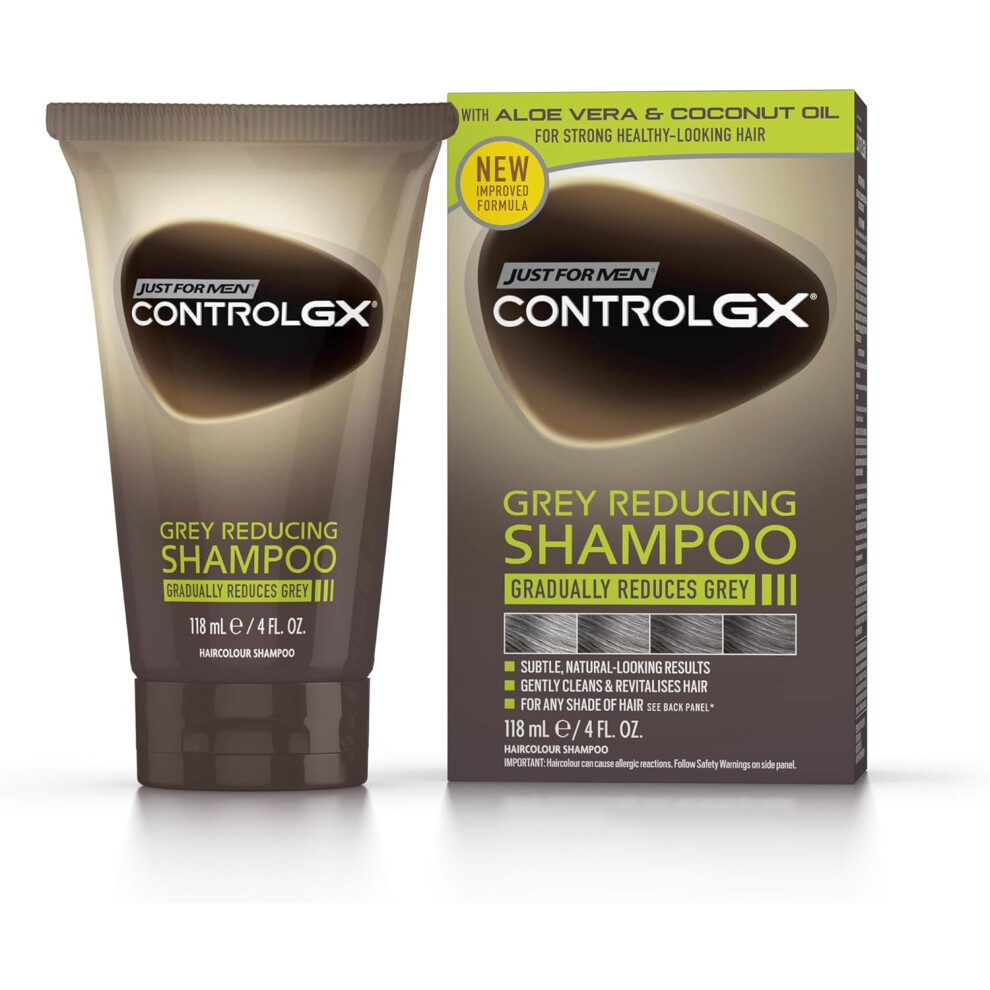 Just For Men Control GX Grey Reducing Shampoo For Grey Hair With Coconut Oil & Aloe Vera New Improved Formula All Shades, 118ml, packaging may vary