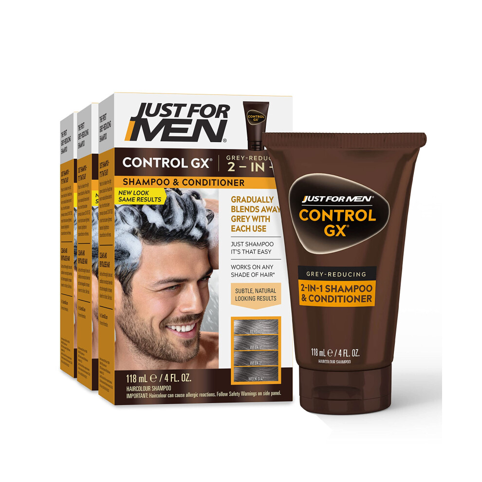 Just For Men Control GX 2-in-1 Shampoo & Conditioner, Gradually & Permanently Reduces Grey Hair With Each Wash â All Shades, 118 ml