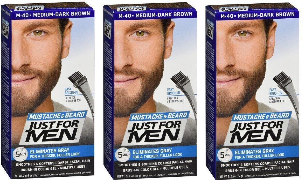 6x Just For Men M40 Medium Dark Brown Moustache & Beard Facial Hair Colour Dye