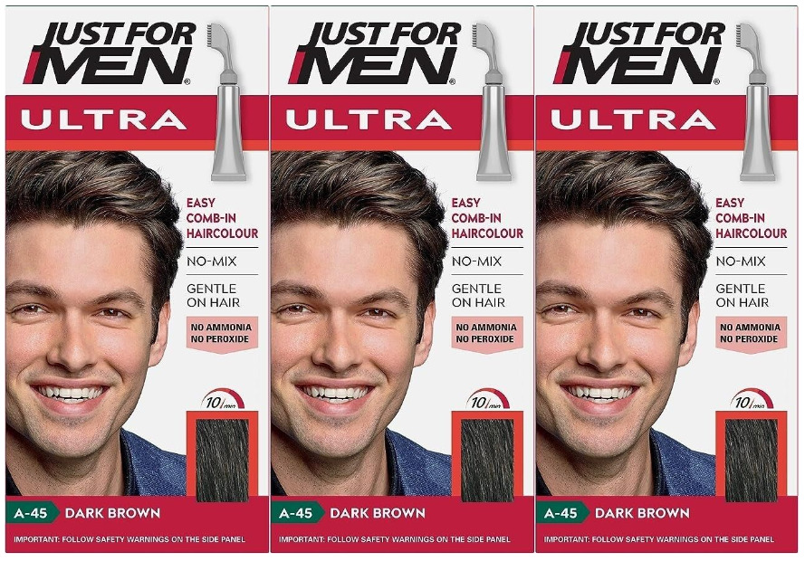 3 x Just For Men Ultra Easy Comb In Autostop A-45 Dark Brown Coloured Hair Dye