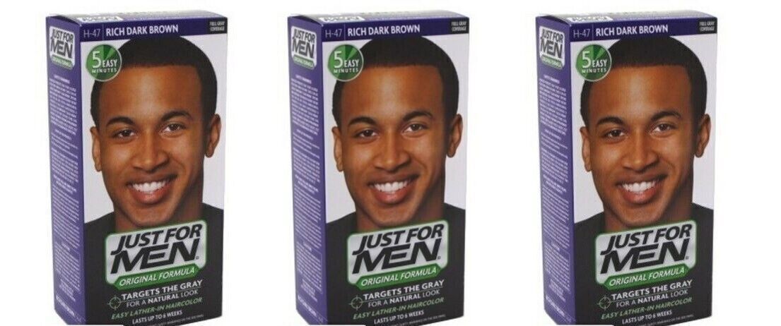 BL Just For Men Shampoo In #H-47 Haircolor Rich Dark Brown - THREE PACK