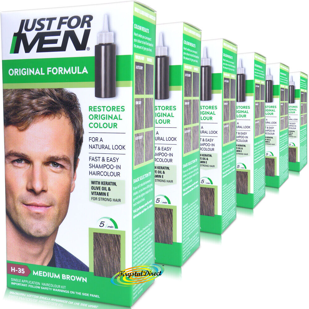6x Just For Men H35 Medium Brown Original Formula Shampoo in Haircolour Dye