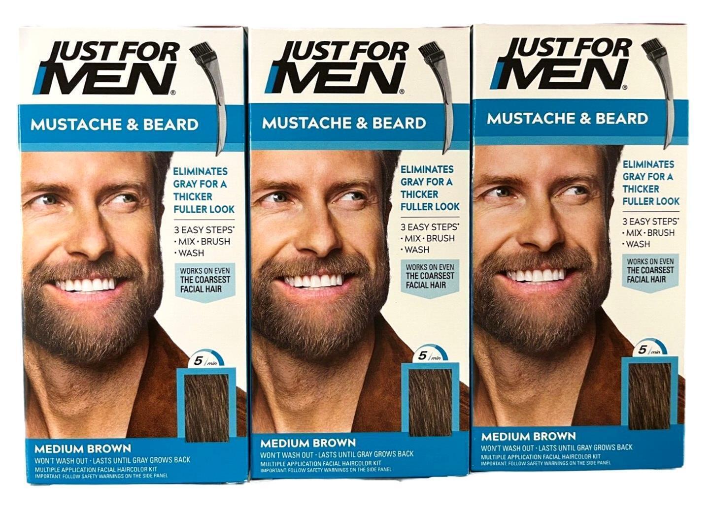 3x Just For Men M45 Dark Brown Black Moustache & Beard Facial Hair Colour Dye