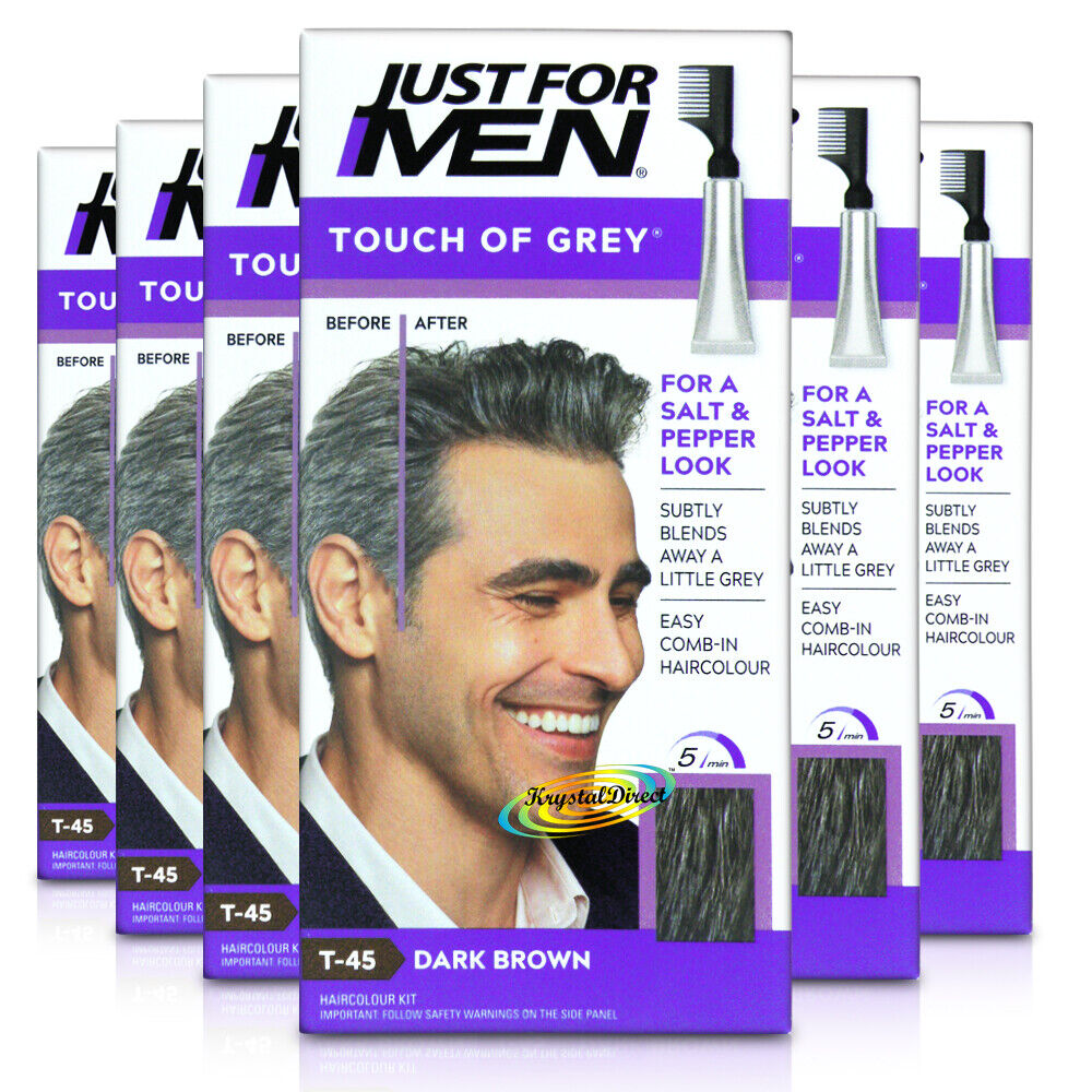 6x Just for Men Touch of Grey T45 Dark Brown Easy Comb in Haircolour Dye