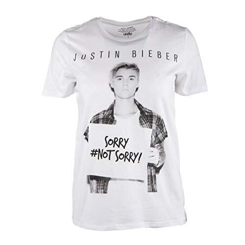 Undiz Ladies T-Shirt Justin Bieber Short Sleeve Town Shirt, White, S