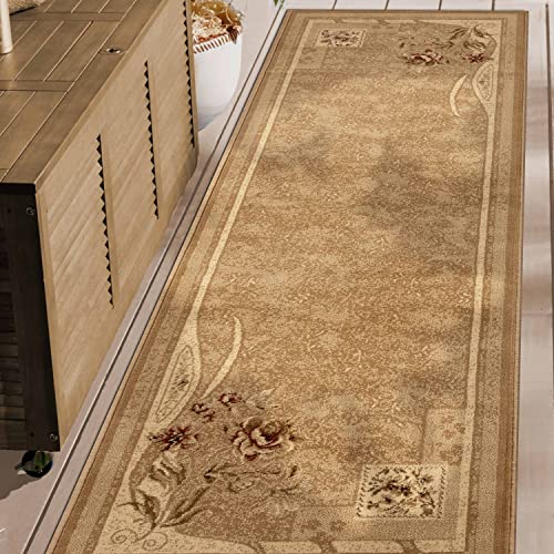 Superior Indoor Runner Area Rug with Jute Backing, Modern Floor Decor for Home Hallway, Living Room, Floor Cover, Entryway, Bedroom, Minimalist Modern Floral Block, 2' 7" x 8', Taupe