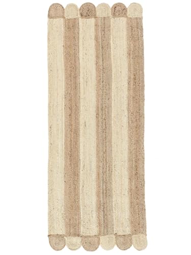 Scalloped Jute Rug Natural Beige Rustic Curved Scandi Bohemian Rug Eco-Friendly Durable Handwoven Rugs for Living Room Mat, Hallway Runner Rugs 60cm x 240cm