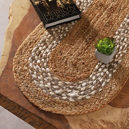 Natural Jute Table Runner Rug, Farmhouse Style Decor for Dining Table | Hand Woven Rug Long-Lasting Oval Runner | Made from Jute Material for Indoor & Covered Door Entrances Size- 13 X 48 Inch