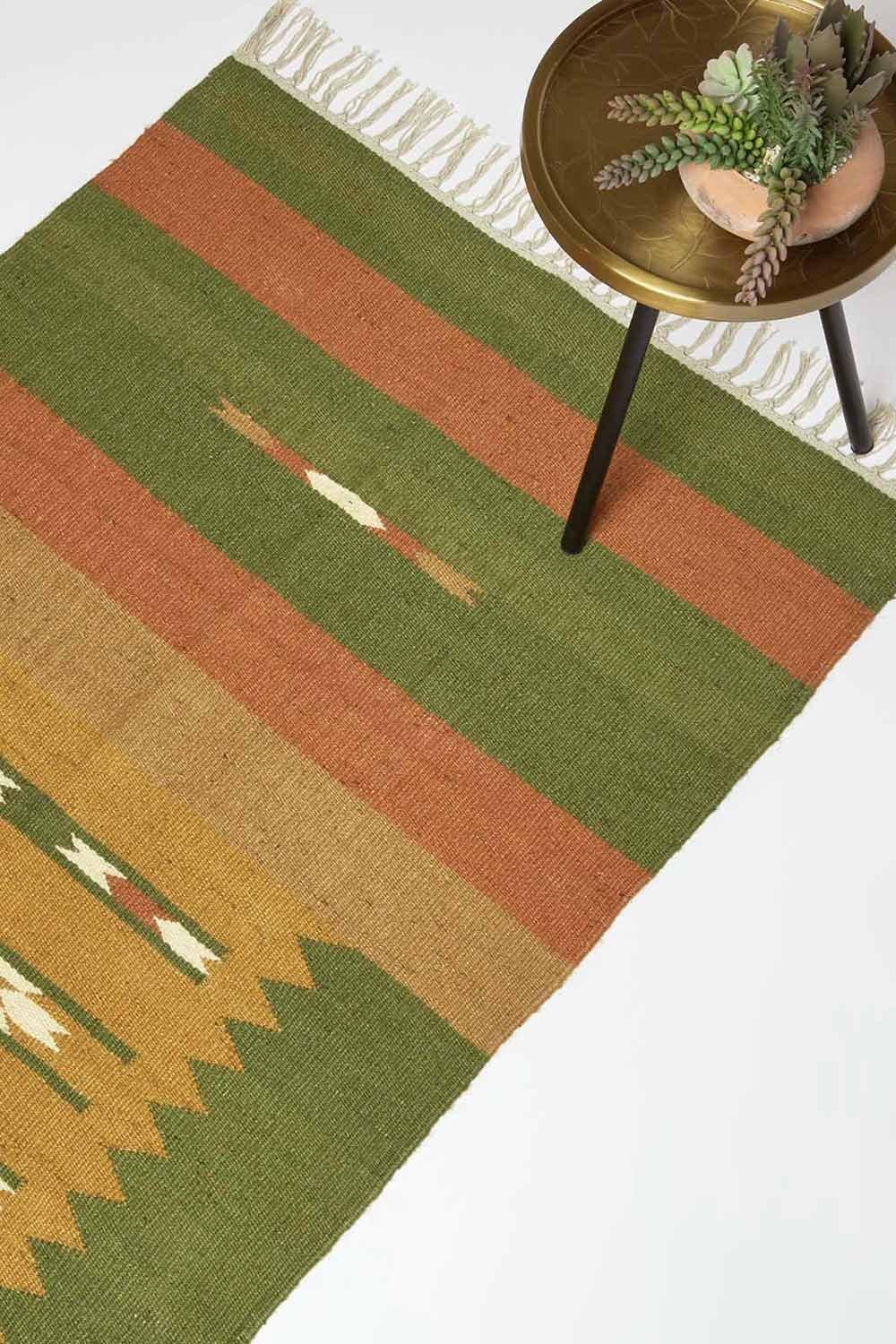 Lundi Orange & Green Kilim Runner Cotton & Jute Rug 80 x 180 cm