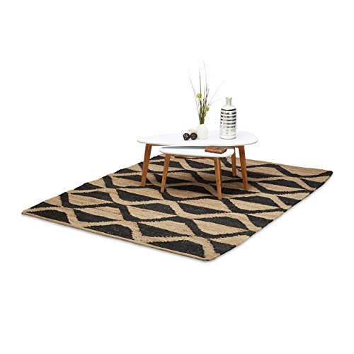 Relaxdays Carpet Runner with Diamond Pattern, Jute Handmade Kitchen Rug, 80x200 cm, Natural/Black