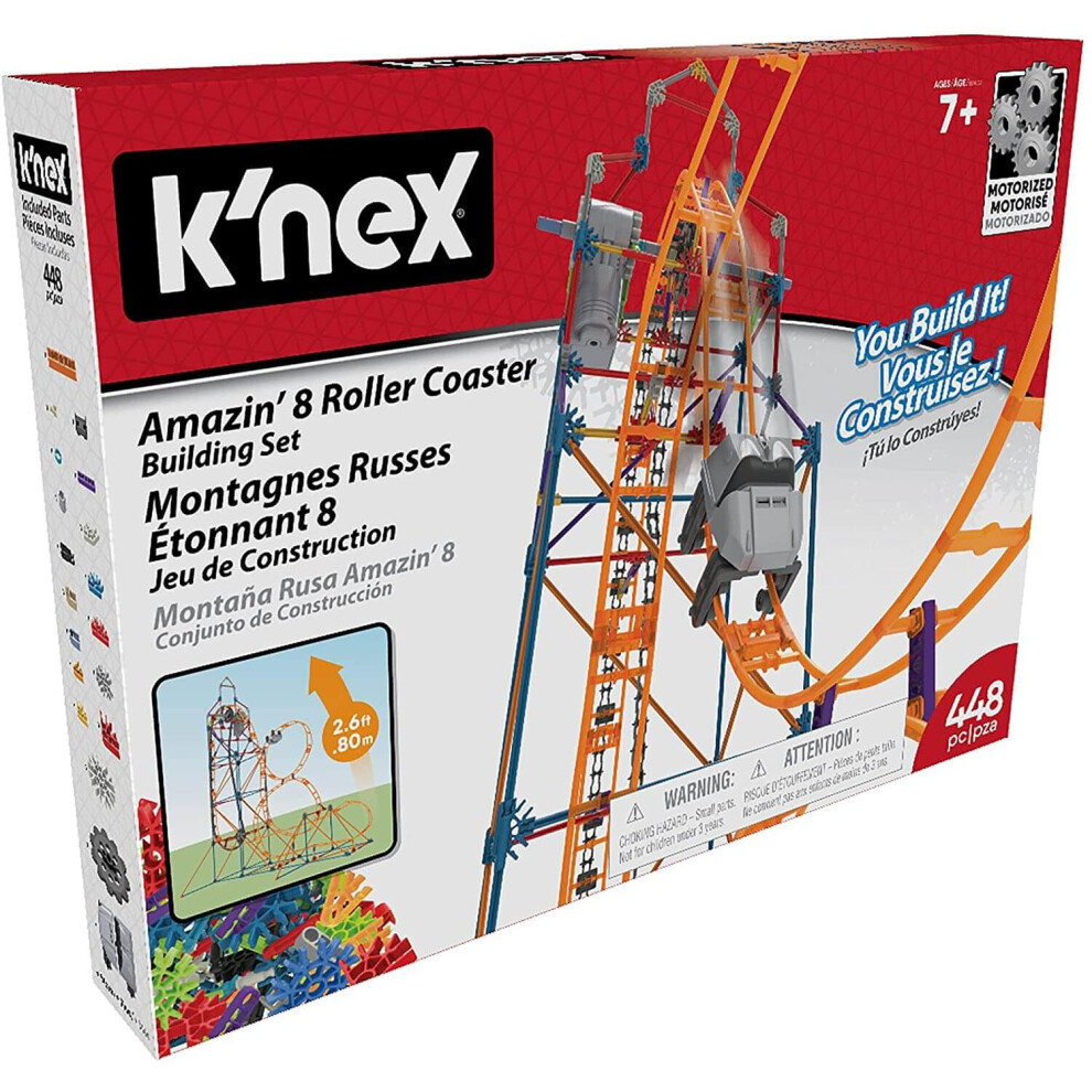 K'NEX | Amazin' 8 Coaster | Construction Set for Boys and Girls, Theme Park, Roller Coaster, 448 Piece Kids Building Set for Children Ages 7+ | Basic Fun 80216