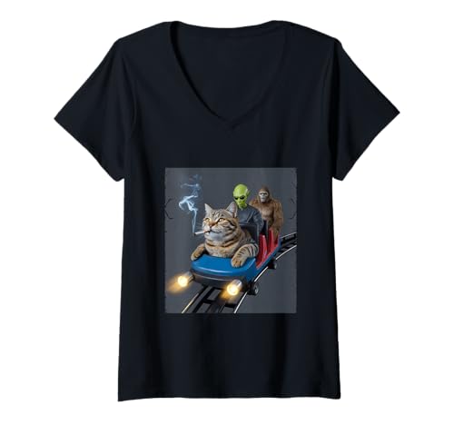 Womens Cigarette Cat Roller Coaster Smoking Funny Cat Meme V-Neck T-Shirt