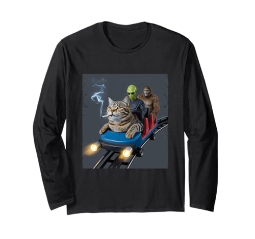 Cigarette Cat Roller Coaster Smoking Funny Cat Meme Long Sleeve T-Shirt