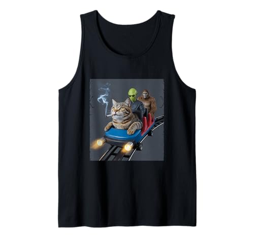 Cigarette Cat Roller Coaster Smoking Funny Cat Meme Tank Top