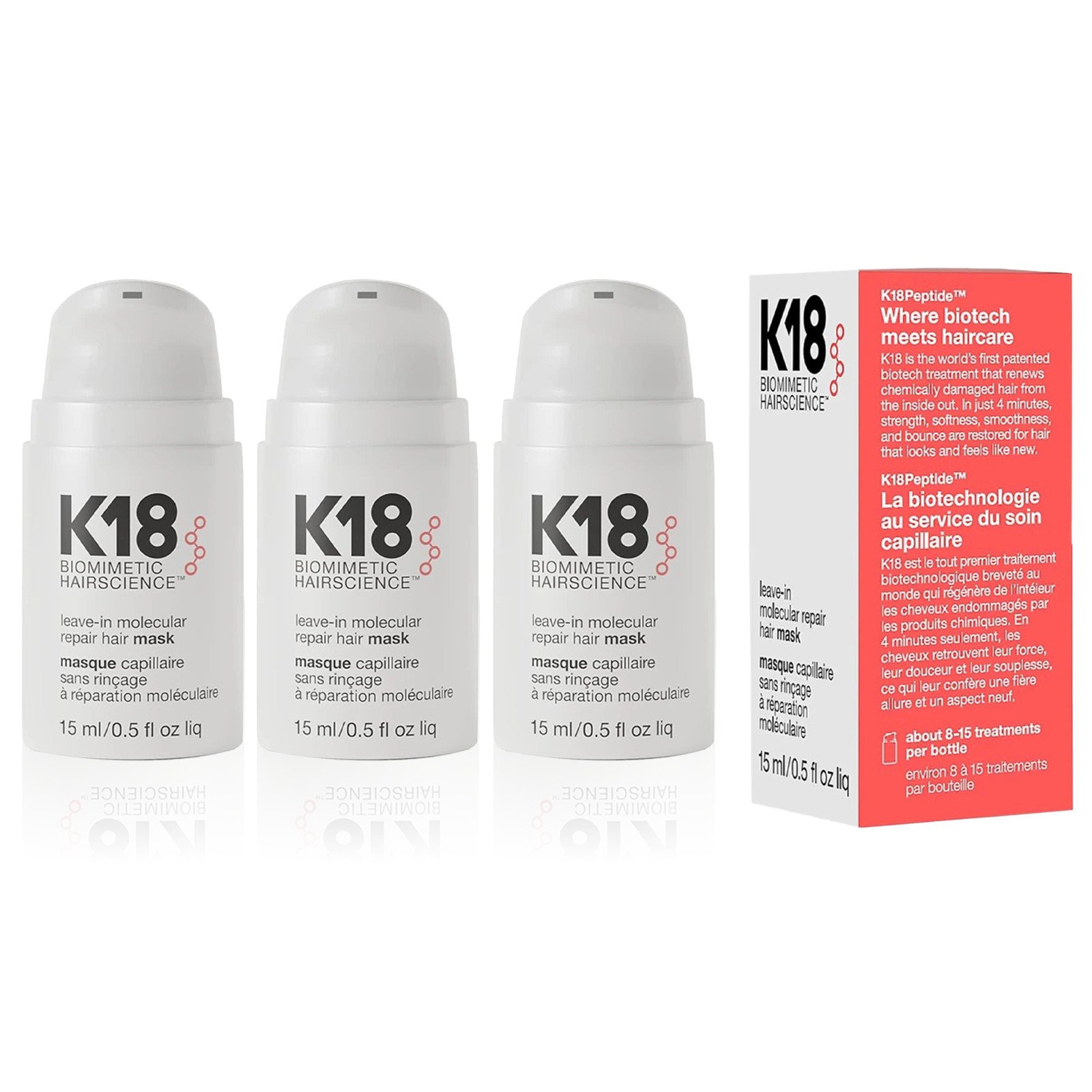 K18 Leave-In Molecular Repair Hair Mask 15ml x 3 Pack – Strengthen & Repair