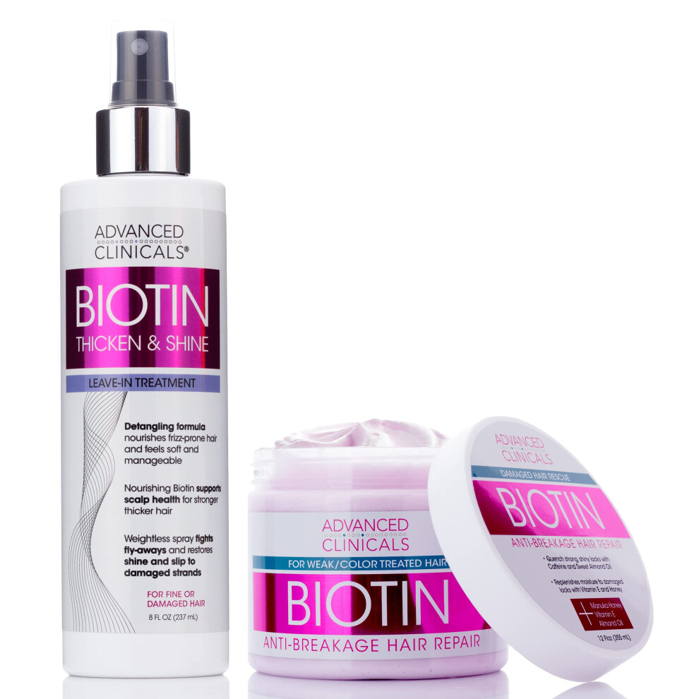 Advanced Clinicals Biotin Hair Mask Anti-Breakage Hair Repair Mask + Biotin Leave-in Hair Conditioner Treatment 2-Piece Set To Repair Split Ends Sup