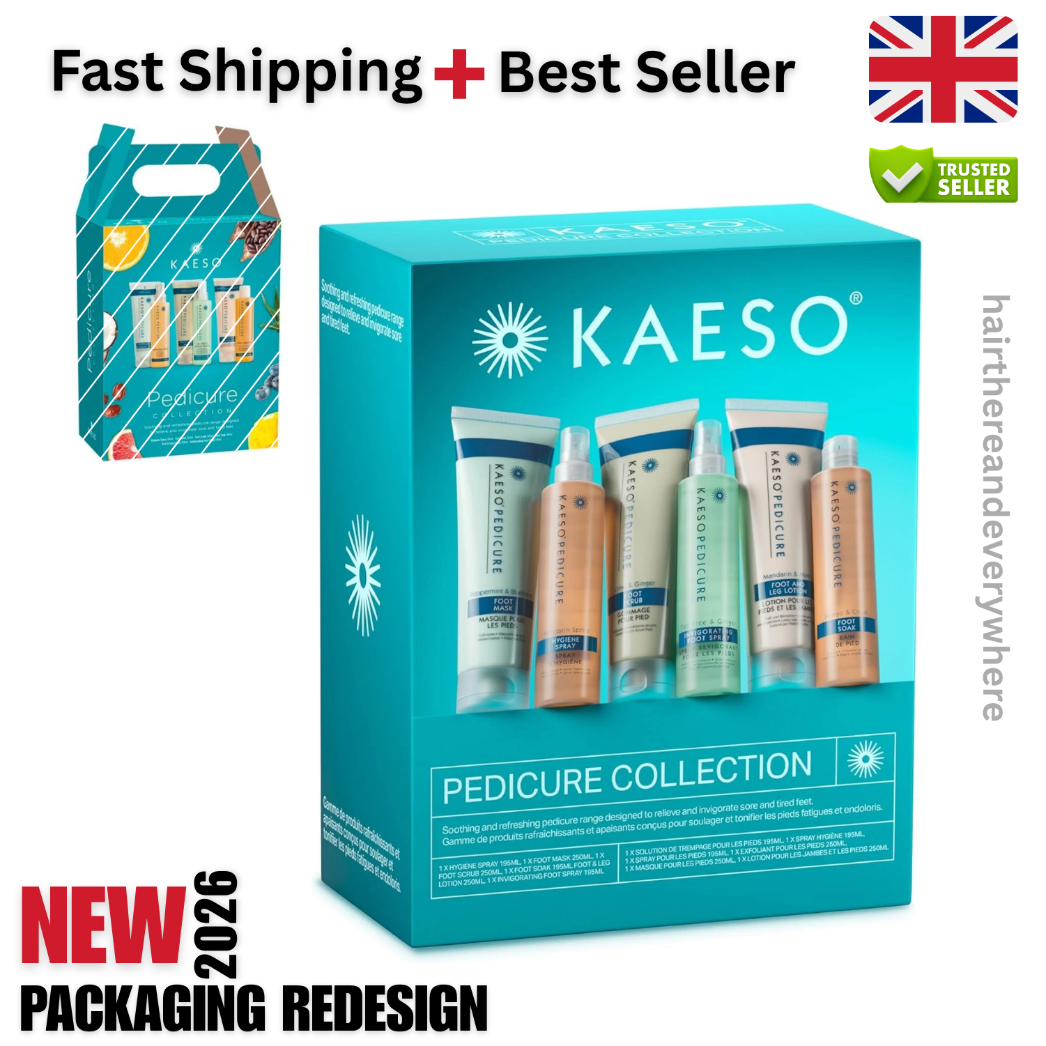 Kaeso Beauty Pedicure Gift Set Kit (6 items) Foot Soak-Mask-Scrub-Spray-Cream