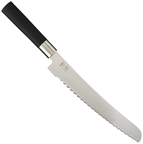 KAI Wasabi Black Bread Knife 23.0 cm Blade Length - Polished 6A/1K6 Stainless Steel 58 (±1) HRC - Black Polypropylene Handle - Serrated Knife - Made in Japan