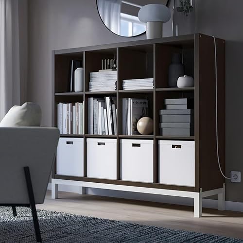 ZRIZAURA KALLAX Shelving Unit with Underframe 147 × 94 cm with 4 FJÄDERHARV Storage Boxes with Lids, Cube Bookcase Organiser for Living Room, Bedroom & Home Office (Black-brown/white)