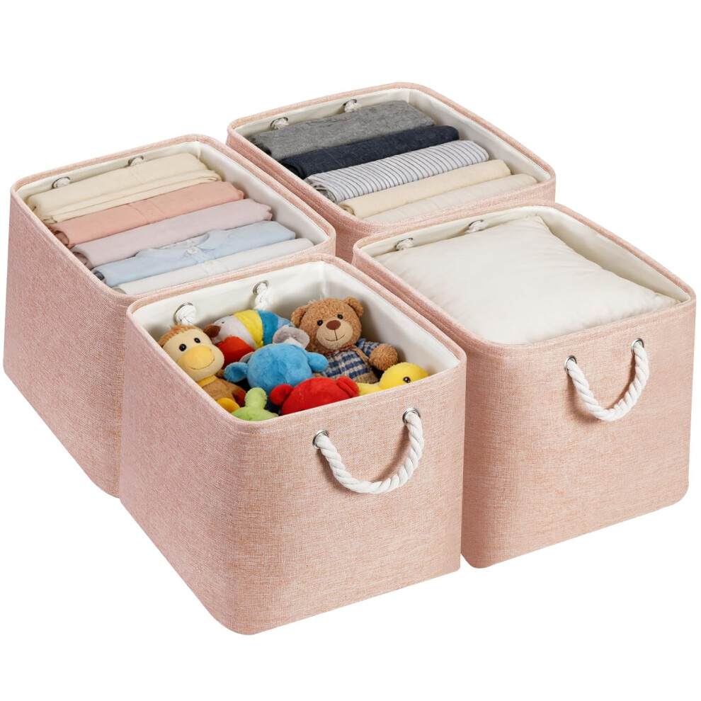 JUNLAI 4 Pack Fabric Storage Boxes, Kallax Storage Boxes 33 x 38 x 33 with Handles, Foldable Large Storage Pink Basket for Office & Home, Book,