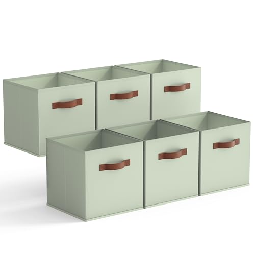 GRANNY SAYS Cube Storage Boxes, Pack of 6 Foldable Storage Cubes 27x27, Square Storage Boxes for Shelves, Decorative Storage Cube Boxes, Kallax Storage Boxes for Organising Craft Supplies, Sage Green