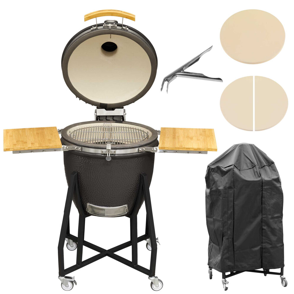 KAMADO BONO Ceramic BBQ, 23" Grande, Black I Kamado BBQ Ceramic Grill I Kamado Barbecue with Multifunction Two Zone Grilling System I Portable Ba